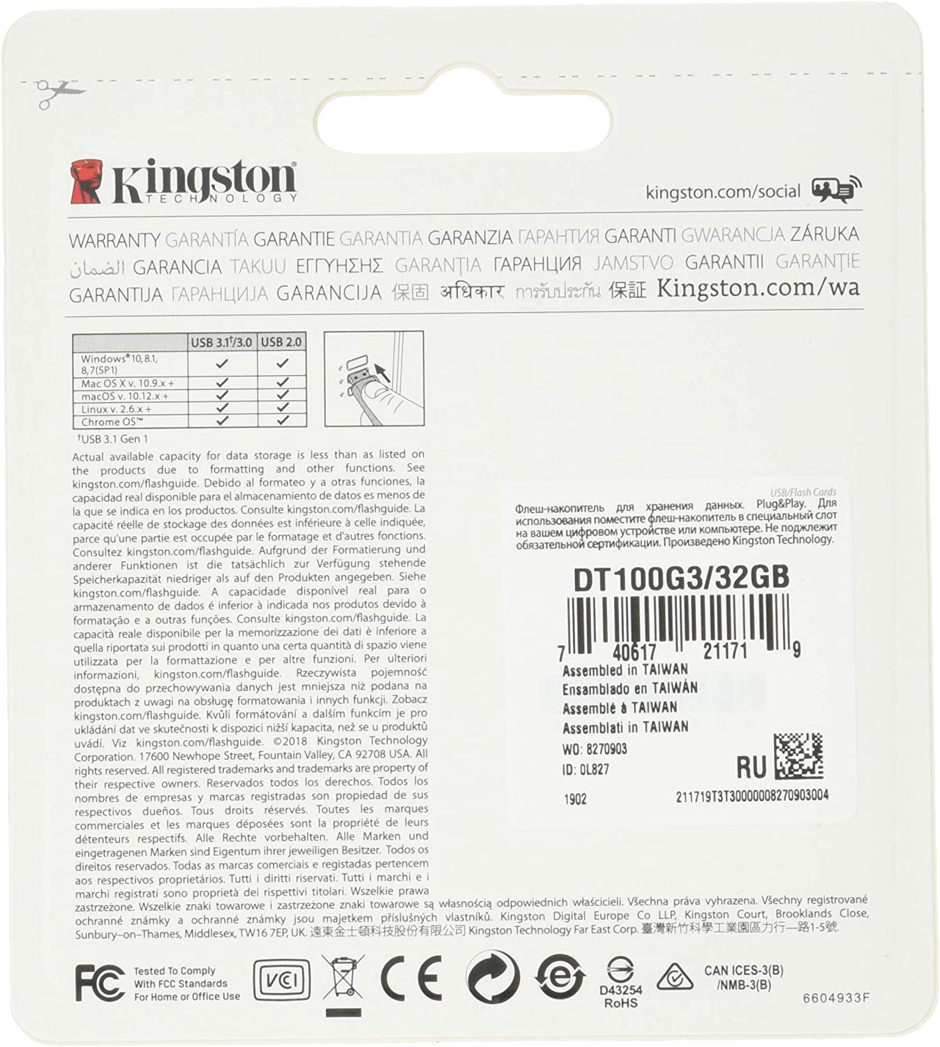 - USB 3.1 Gen 1 (USB 3.0)¹ — DT100 G3 delivers USB 3.0 speeds.